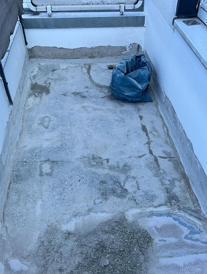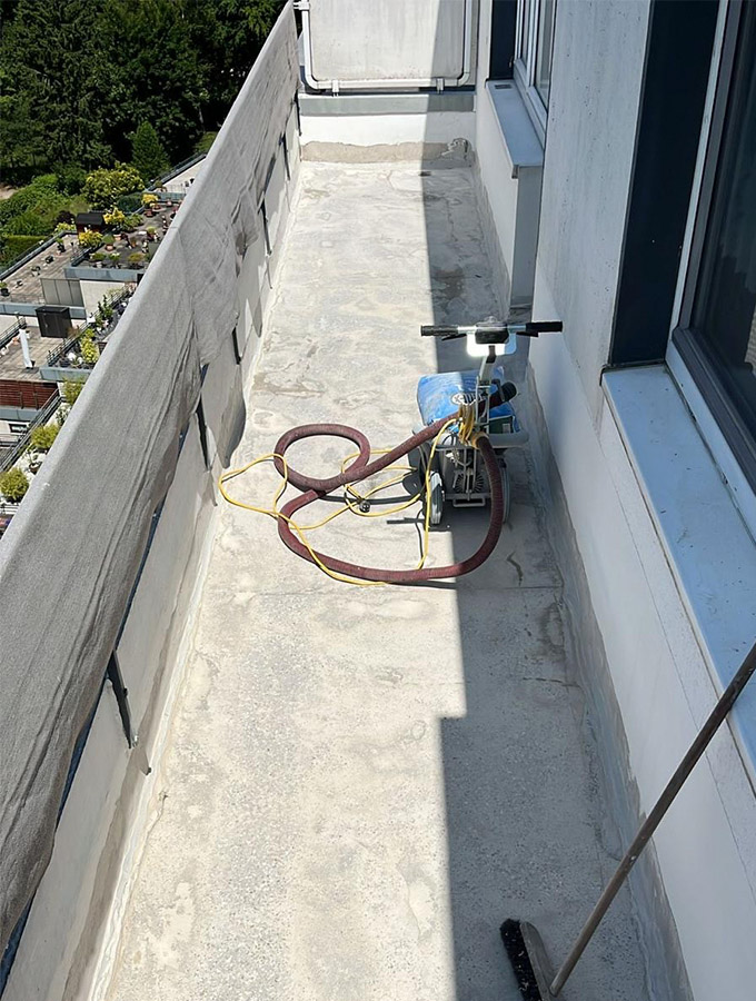 Nachfolgend finden Sie vier Fotos mit den einzelnen Verarbeitungsschritten von einer Balkonsanierung mit Enke-Produkten in Wuppertal.